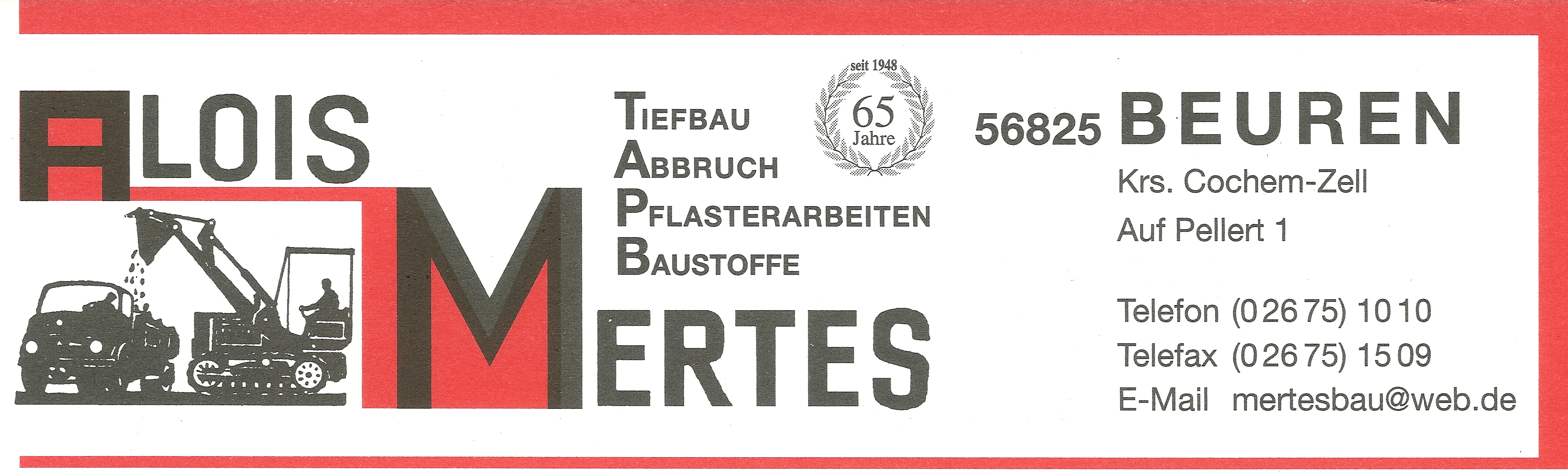 Firma Alois Mertes GmbH Auf Pellert 1 56825 Beuren Tel: 02675/1010 Fax: 02675/1509 Email: MertesBau@web.de